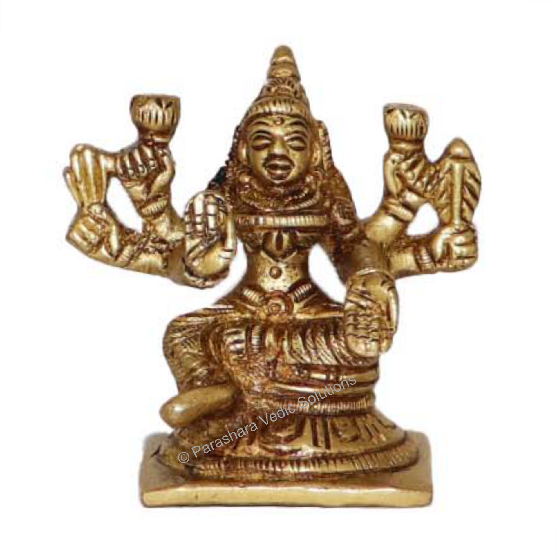 We at Parashara, under the name Arkam tend to provide you with the best quality Puja Samagri in the most appropriate form. Arkam Dhanya Lakshmi Murti is made of best quality Pure Solid Brass with super fine carving and antique finish. Dimensions: Height: 6.4 cms, Length: 6.3 cms, Width: 3.4 cms. Weight: 210 grams (Approx.)