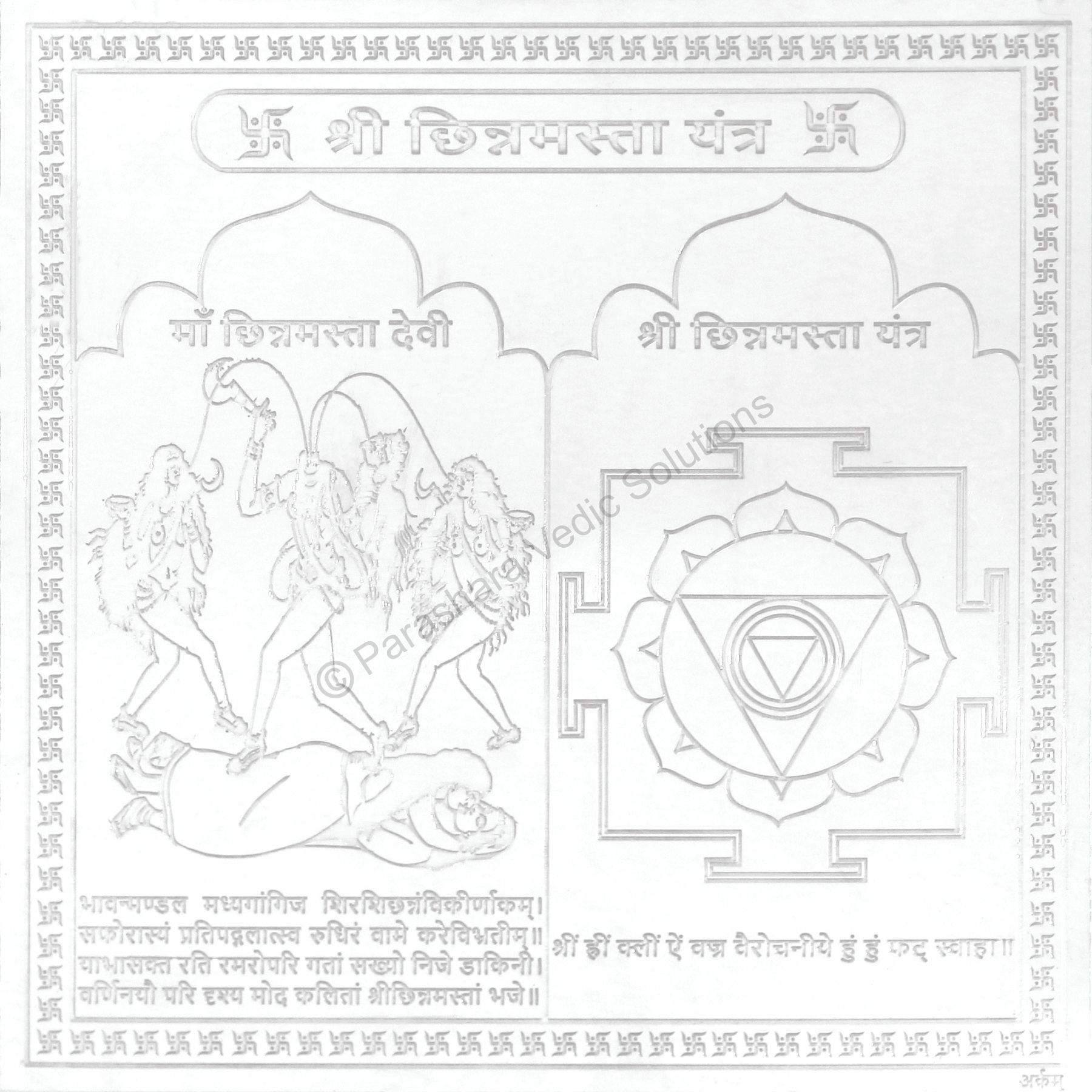 Deity: Goddess Chinnamasta Benefits: Worshipper of this yantra gets success in all areas of life. One also becomes politically successful. Goddess Chinnamasta fulfills all desires of the devotee. The worshipper enjoys all laurels in life and is never in scarcity. It destroys all the sins, hence the worshipper becomes free from all the sins. After performing Goddess Chinnamasta Sadhana, all other Sadhanas become easy and smooth, consequently success comes more easily. The worshipper of this yantra remains healthy, handsome and young for a long period. This sadhana makes the body stronger and one can face any type of challenges and danger in life.