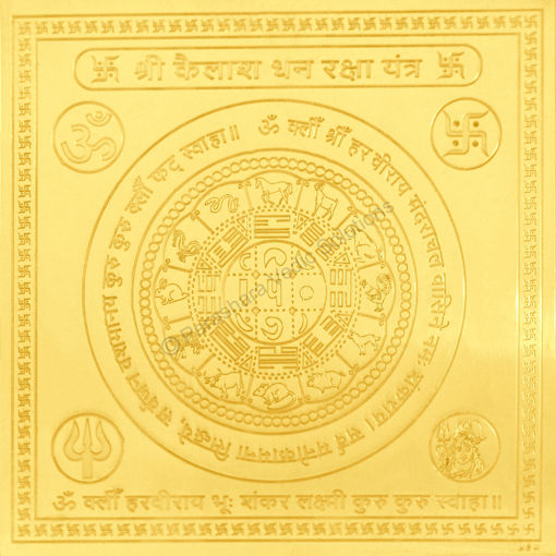 Deity: Lord Shiva Benefits: Kailash Dhan Raksha Yantra is one of the most popular yantra for protection and preservation of wealth. Worshipping this yantra builds a shield around the family and whole house and avoids adverse situations. Worshipping Kailash Dhan Raksha Yantra bestows one with wealth, riches and protects from negativity and adverse situations.