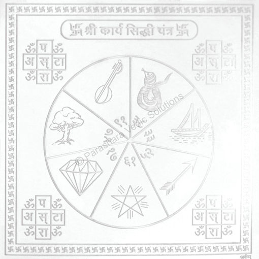 Deity: Lord Ganesha Benefits: Sri karya Siddhi Yantra is intended for fulfillment of all Desires. It is a highly effective Yantra, which ensures the individual's well being and success in almost every area of life specifically success in profession, business, education, career goals, politics and favors from superiors. It is also used for protection against the 'evil eye' and other dangers to both – the individual and his family, for courage against all odds and ensuring success in all activities.