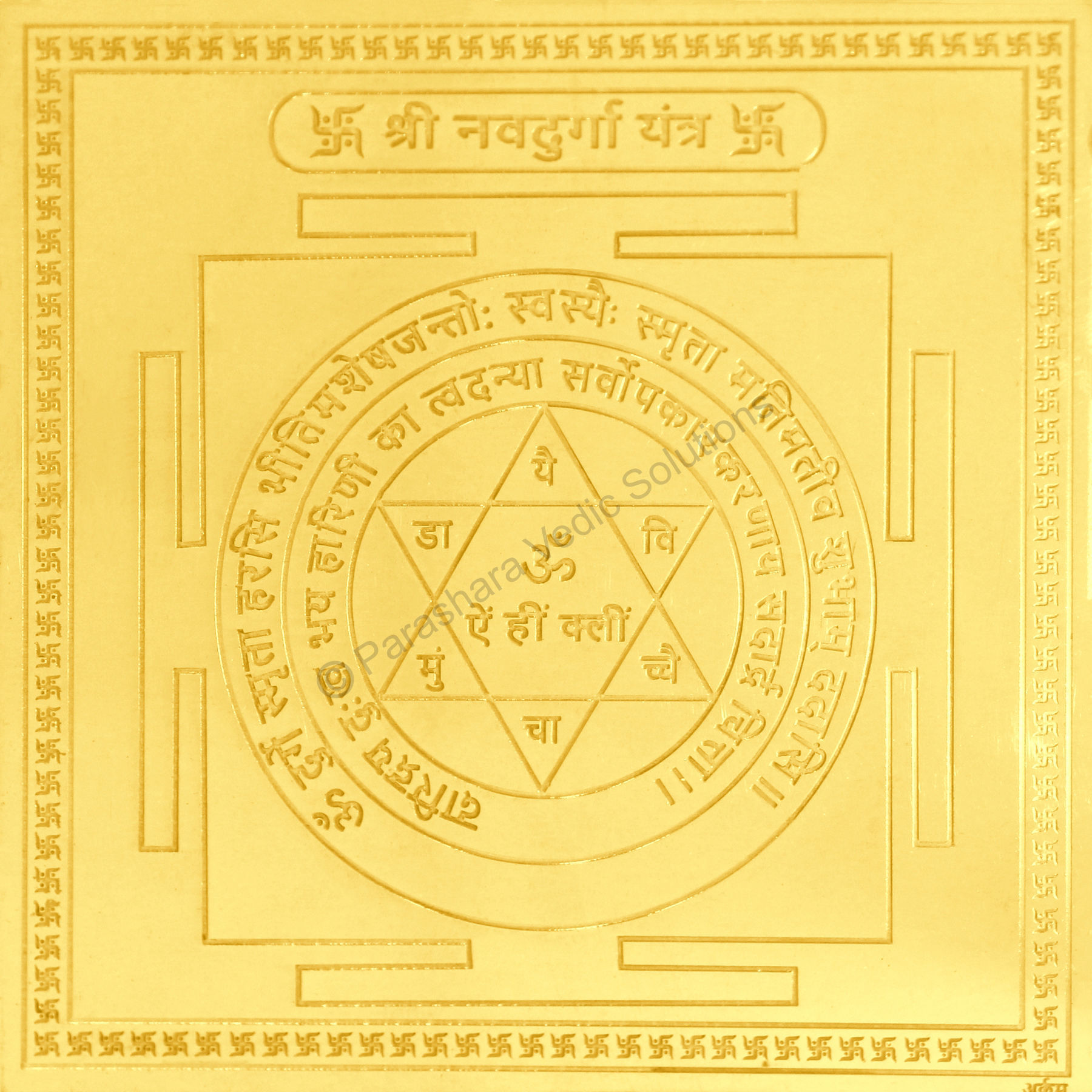 Deity: Goddess Navdurga Benefits: Navdurga Yantra is used to worship all nine forms of Goddess Durga. This is a very powerful yantra for protection from all sorts of physical and other dangers and against unwanted problems, gaining good health, destroying enemies, stopping bad dreams, etc. This yantra is very helpful for the fulfillment of highest desires, removal of business and personal problems, and to get rid of difficulties. This yantra blesses the individual with an enhanced ability of perception which makes the worshipper identify the right gainful prospects, at the right time in life. Navdurga Yantra helps the worshipper stay away from all kinds of negative energy, evil eyes, black magic and harmful powers. This yantra blesses a person with mental peace and harmony in family relationships.