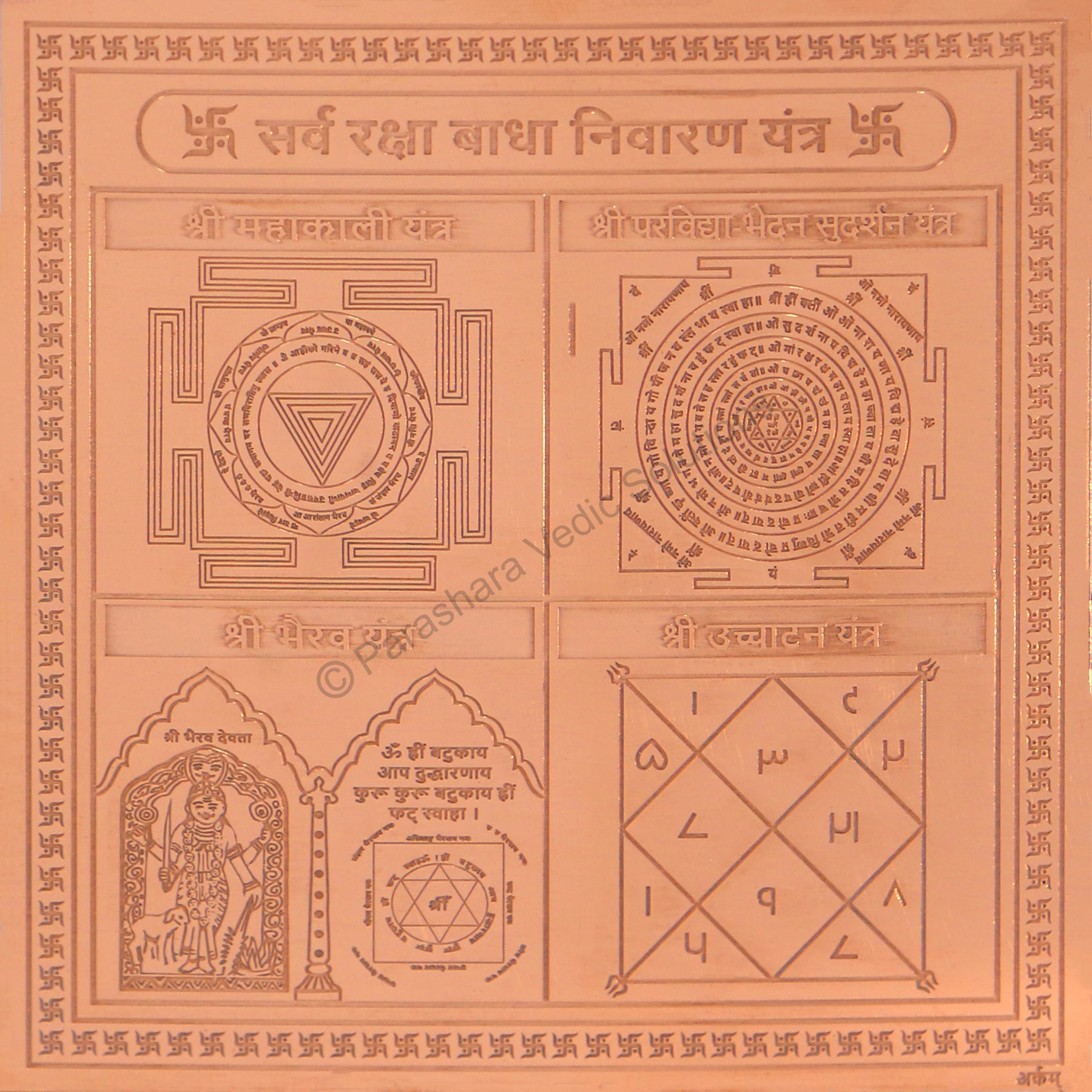 Arkam Sarva Raksha Badha Nivaran Yantra - Copper - (4 x 4 inches, Brown)